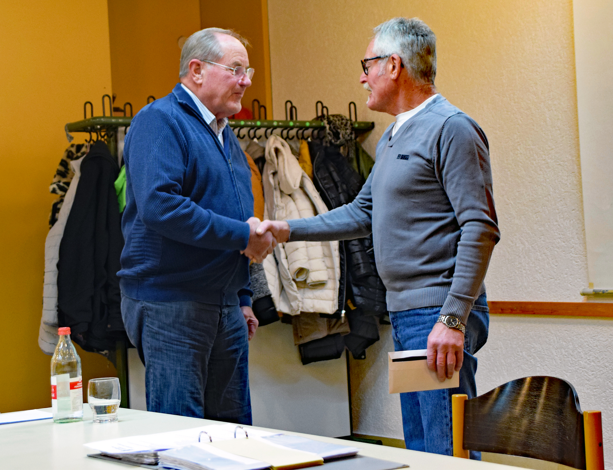 Der erste Vorsitzende Manfred Lutz bedankt sich bei Hermann Birkenmeier für die langjährige Arbeit für den Verein.